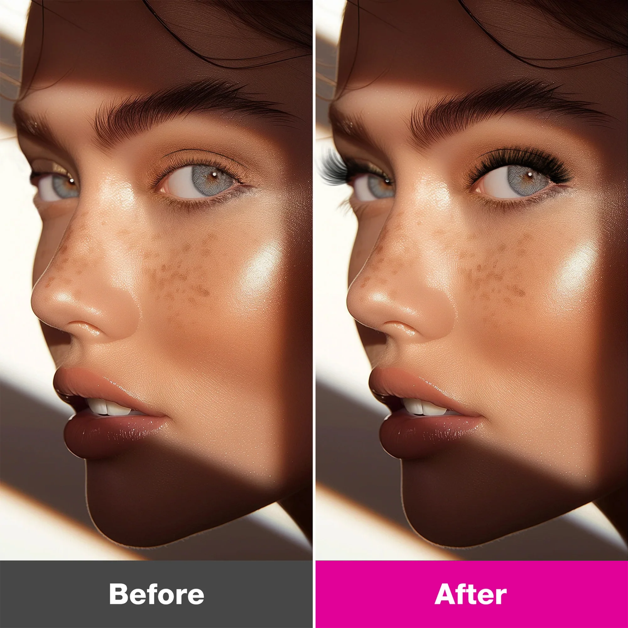 - The 3D positioning technology ensures consistent shape and curvature for each cluster of eyelashes in every shot